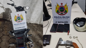 Uma ação rápida de policiais militares do 2º Batalhão da Polícia Militar do Acre (PMAC) resultou na prisão de dois homens e na recuperação de uma motocicleta furtada, na noite desta terça-feira (14), no Loteamento Farhat, em Rio Branco. Os