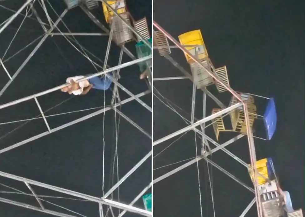 Vídeos gravados por pessoas que estavam no local mostram a vítima se segurando na estrutura metálica enquanto o público pedia para o brinquedo ser parado. A ação rápida dos funcionários e de populares garantiu que a mulher fosse retirada com segurança.