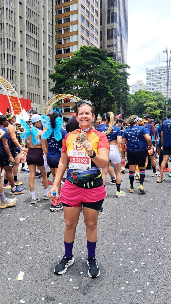 Ela ressalta que cada treino, cada dificuldade superada e cada renúncia ao longo do caminho fizeram sentido no momento em que esteve na Avenida Paulista, ponto de largada e chegada da corrida.