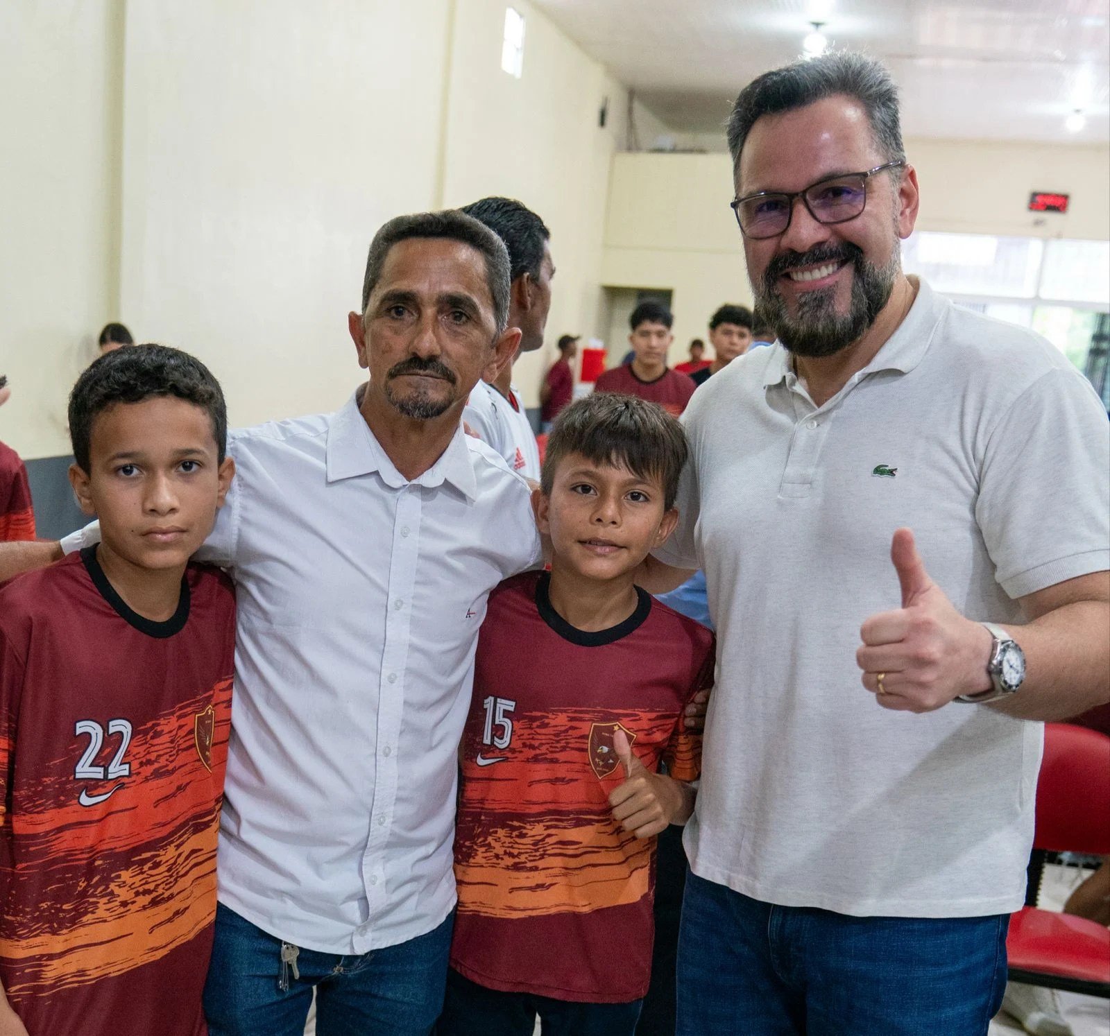 Logo em seguida, na Igreja Internacional da Graça, Alan Rick se reuniu com professores e alunos da Escolinha de Futebol do Nato, uma iniciativa que promove a prática esportiva, a inclusão social e a formação cidadã para crianças e adolescentes de Tarauacá. As aulas ocorrem em campos criados pelo próprio Nato, na cidade e na comunidade do Rio Acurauá.