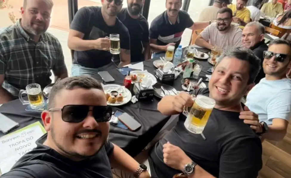 Nas imagens, o grupo aparece animado dentro do veículo enquanto percorre ao menos quatro bares localizados em pontos distintos da cidade. A proposta foi tornar a despedida um momento marcante para o noivo, reunindo amigos e visitas a diferentes estabelecimentos ao longo do trajeto.