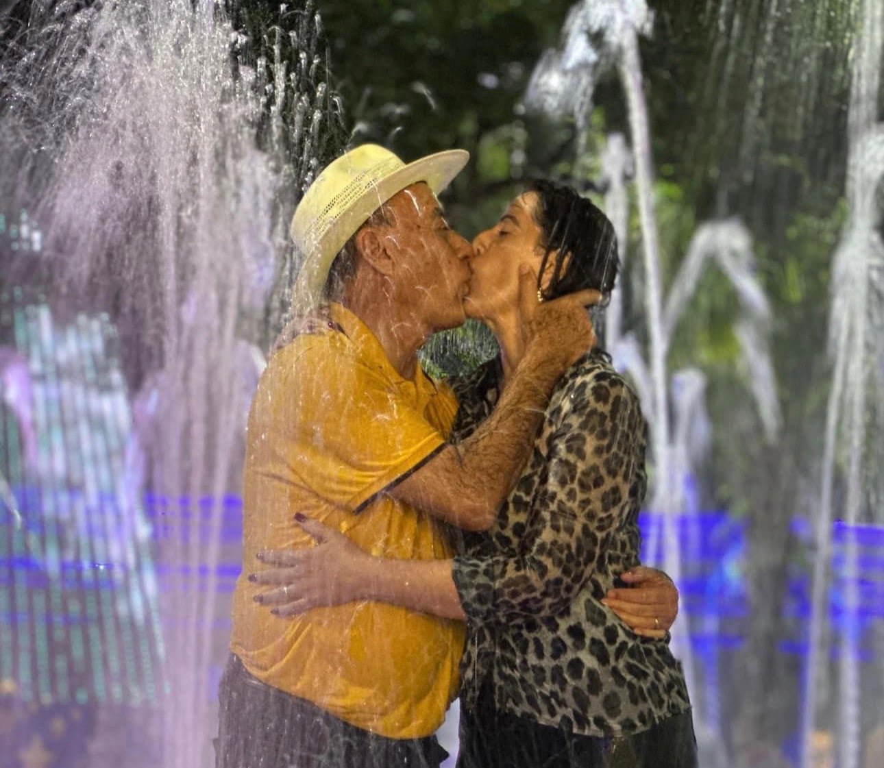 Bocalom e Kellen aproveitaram a noite e tomaram banho junto com as crianças na fonte luminosa da praça. O casal ainda protagonizou um beijo, que foi registrado e publicado pelo prefeito em suas redes sociais.
