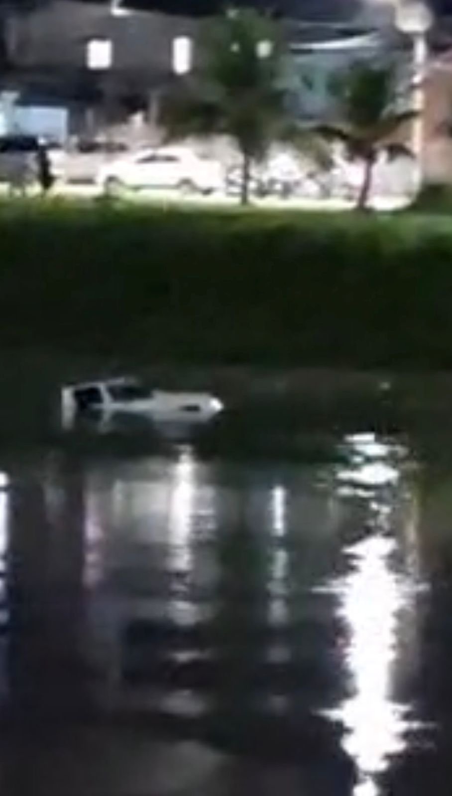 Imagens gravadas por moradores da região mostram o momento em que o veículo é arrastado pela forte correnteza, até desaparecer completamente.