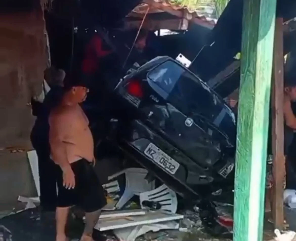 Um carro invadiu uma churrascaria localizada nas proximidades do Campo do Calafate, por volta das 11h desta quarta-feira (7). O estabelecimento estava em funcionamento no momento do acidente, o que gerou correria entre clientes e funcionários.