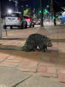 Porco-espinho gigante tenta atravessar pista em Rio Branco, quase é atropelado e mobiliza bombeiros