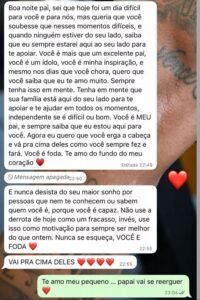 Neymar emocionou os seguidores ao compartilhar uma mensagem especial enviada por seu filho, Davi Lucca, depois da derrota do Santos para o Vasco nesse domingo (17/8). A partida terminou em goleada de 6 x 0 para o time carioca, mas