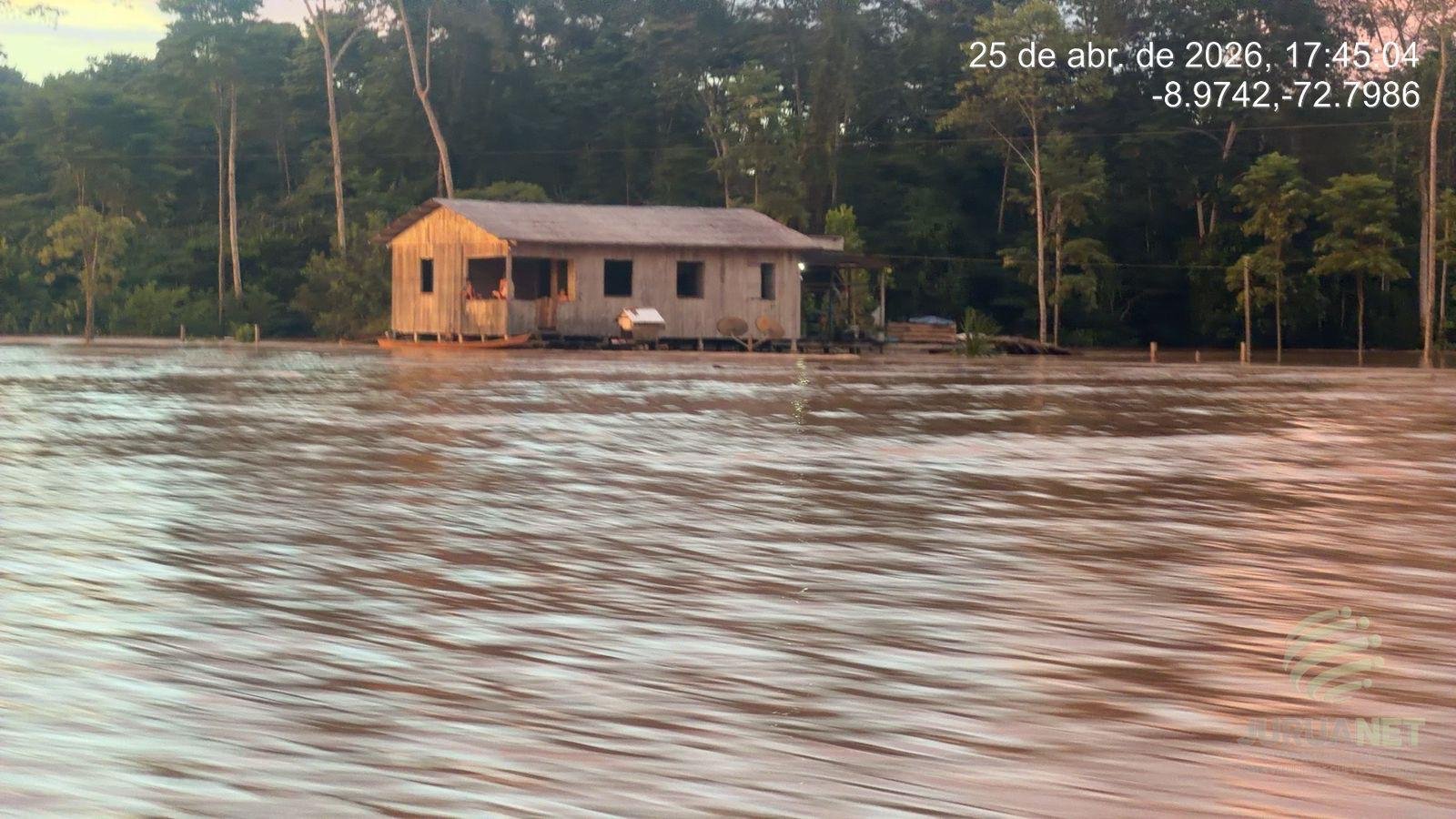 A cheia do Rio Juruá tem provocado sérios impactos em Marechal Thaumaturgo. Neste domingo (26), o nível do rio alcançou 12,72 metros, ultrapassando a cota de transbordamento e agravando a situação em diversos bairros do município.