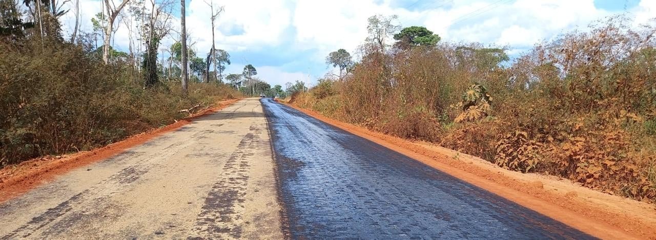 O governo do Acre, por meio do Departamento de Estradas de Rodagem, Infraestrutura Hidroviária e Aeroportuária (Deracre), segue nesta quinta-feria, 21, com a implantação da pavimentação do Ramal dos Paulistas, na zona rural de Porto Acre. O segundo trecho da obra, com 5,02 quilômetros, avançou para a fase de imprimação, preparando a estrada para receber o asfalto.