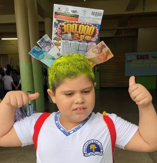 No Instituto São José, em Rio Branco, um aluno chamou a atenção com o cabelo pintado de amarelo vibrante e enfeitado com uma cartela do ACRE CAP.
