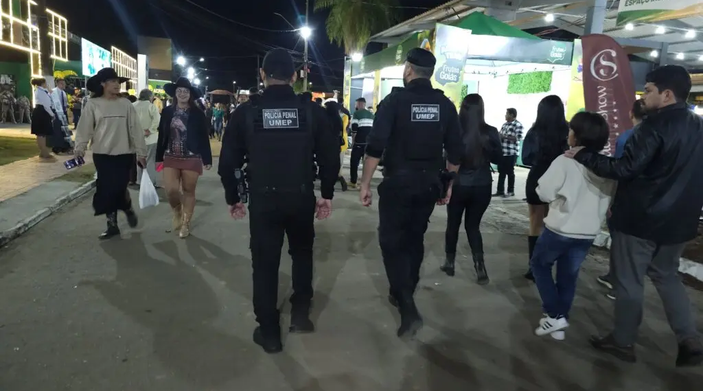 Mais de 180 policiais atuam por noite no Parque de Exposições Wildy Viana, incluindo efetivo de apoio, policiamento ordinário, especializadas e equipes fixas distribuídas no espaço da feira.