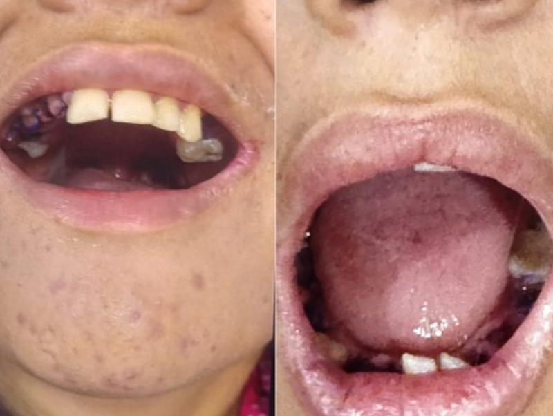 Arcada da jovem com vários espaços abertos após as 17 extrações dentárias realizadas no CIIR, em Belém/Foto: Reprodução