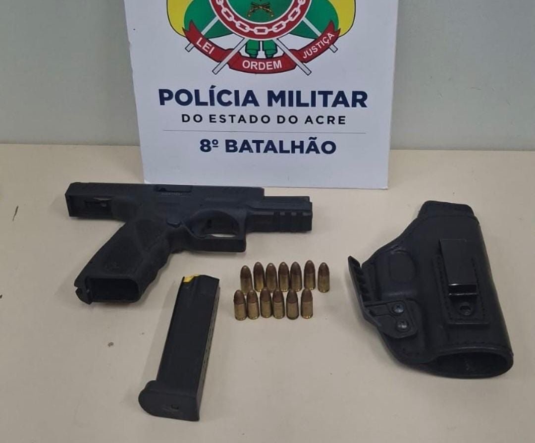Policiais Militares do 8º BPM de Sena Madureira realizaram a prisão de um homem por ameaçar a própria esposa e apreenderam uma arma de fogo, tipo pistola, com várias munições, durante uma ocorrência de violência doméstica no bairro Vila Militar, em Sena Madureira, na noite deste domingo (11).