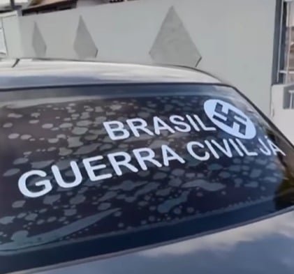 De acordo com a Polícia Militar, a abordagem ocorreu após agentes visualizarem uma suástica estampada em um dos vidros do automóvel, além de outros adesivos considerados ilegais. O motorista foi identificado no local e conduzido à Central da Polícia Civil para os procedimentos cabíveis.