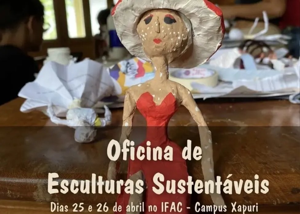 No turno da tarde, das 15h às 17h, será ofertada a Oficina de Esculturas Sustentáveis, com foco na criação artística a partir de materiais recicláveis, utilizando a técnica de papietagem. A proposta busca estimular a criatividade e a consciência ambiental, valorizando o reaproveitamento de resíduos e a expressão manual.