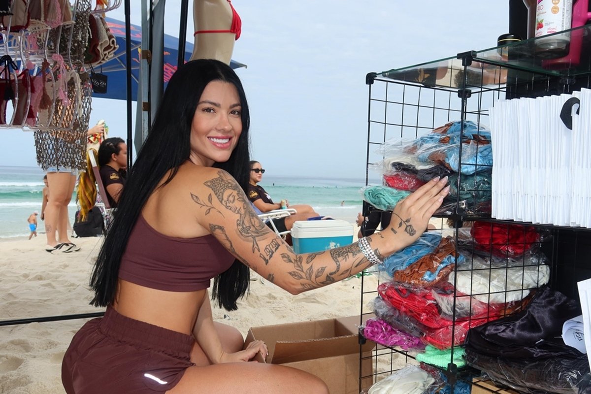 Rayane levou as peças da marca Uzzi para a praia durante um campeonato de futvôlei e fez questão de participar da montagem da tenda até a interação direta com os clientes. Algumas compradoras chegaram a lembrar de quando a empresária vendia pijamas ao lado da mãe numa feira noturna em Areal (RJ).