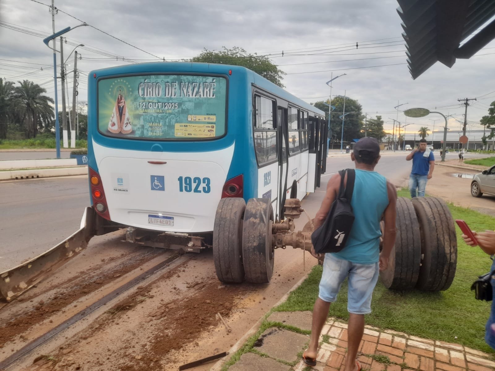 Ônibus de transporte público tem rodas traseiras arrancadas enquanto trafegava em via movimentada de Rio Branco