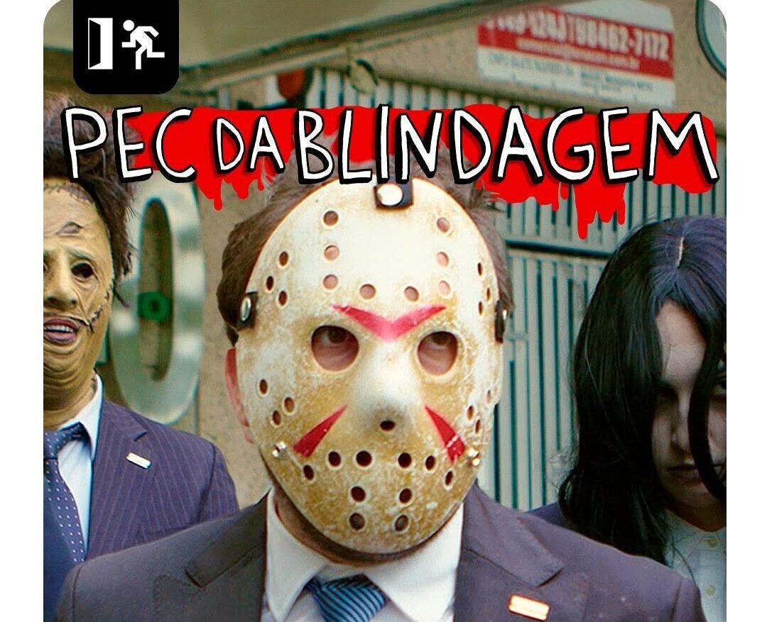 O canal Porta dos Fundos publicou nesta terça-feira (23) o vídeo de sátira política “Bancada do Esquartejo”, em que personagens inspirados em ícones do terror, como Freddy Krueger, Samara e Jason Voorhees, representam deputados fictícios que buscam “blindagem” contra processos legais.