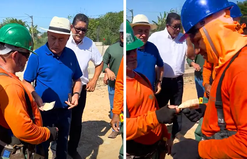 Durante uma visita técnica às obras do programa habitacional em Rio Branco, nesta terça-feira, 21, o prefeito Tião Bocalom (PL) protagonizou um momento descontraído ao entregar uma nota de R$ 50 a trabalhadores do canteiro de obras. O gesto, segundo ele, foi para que os operários pudessem “comprar refrigerante”.
