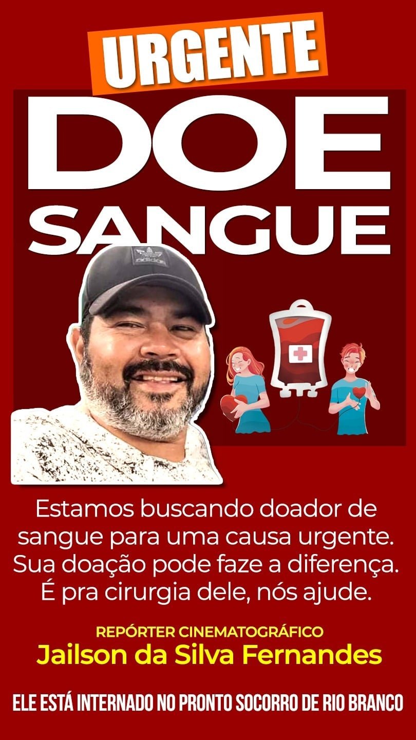 Um apelo por solidariedade mobiliza colegas de profissão, amigos e a comunidade em geral em Rio Branco. Familiares e pessoas próximas ao repórter cinematográfico Jailson da Silva Fernandes estão buscando doadores de sangue com urgência para a realização de um procedimento cirúrgico.