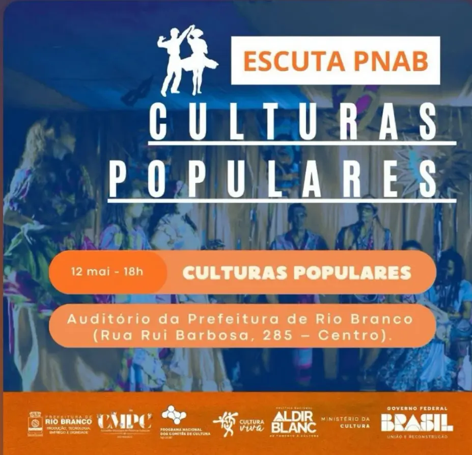 O encontro será realizado às 9h no auditório da Prefeitura de Rio Branco, localizado na Rua Rui Barbosa, 285 – Centro, e tem como objetivo dialogar diretamente com mestres, mestras, brincantes, folguedos, festeiros, lideranças tradicionais e representantes das expressões culturais populares do município.