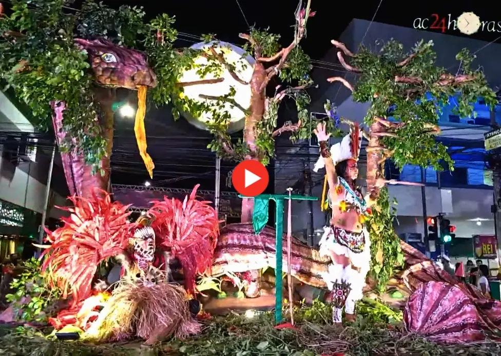 O Bloco Unidos do Fuxico, do bairro Quinze, desfilou nesta segunda-feira, 16, na 4ª noite do Carnaval Rio Branco Folia – Tradição e Alegria 2026, levando para a Avenida Getúlio Vargas o samba-enredo “Daime Luz”. O tema propôs uma abordagem respeitosa sobre a ayahuasca, destacando a importância espiritual, cultural e histórica da bebida para os povos originários da Amazônia e sua expansão para além dos territórios tradicionais.