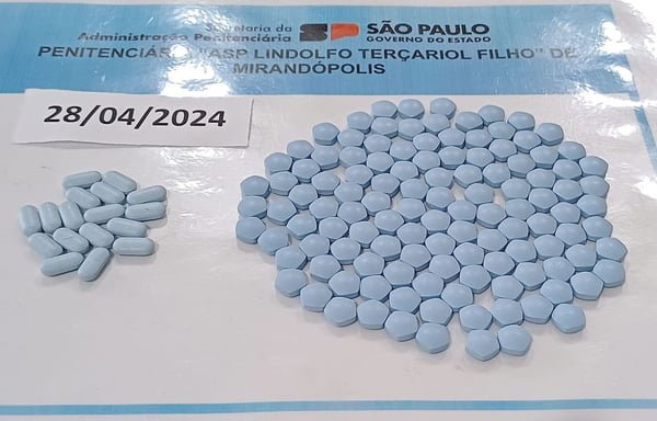 As apreensões mais comuns, no entanto, foram de estimulantes sexuais, maconha e cocaína. Em 2023, foram interceptados 3.772 comprimidos de estimulantes e 1.120 incidentes com drogas foram registrados. No ano passado, mais 1.131 comprimidos e 846 encomendas de drogas foram impedidas de ingressar nas unidades prisionais de São Paulo.